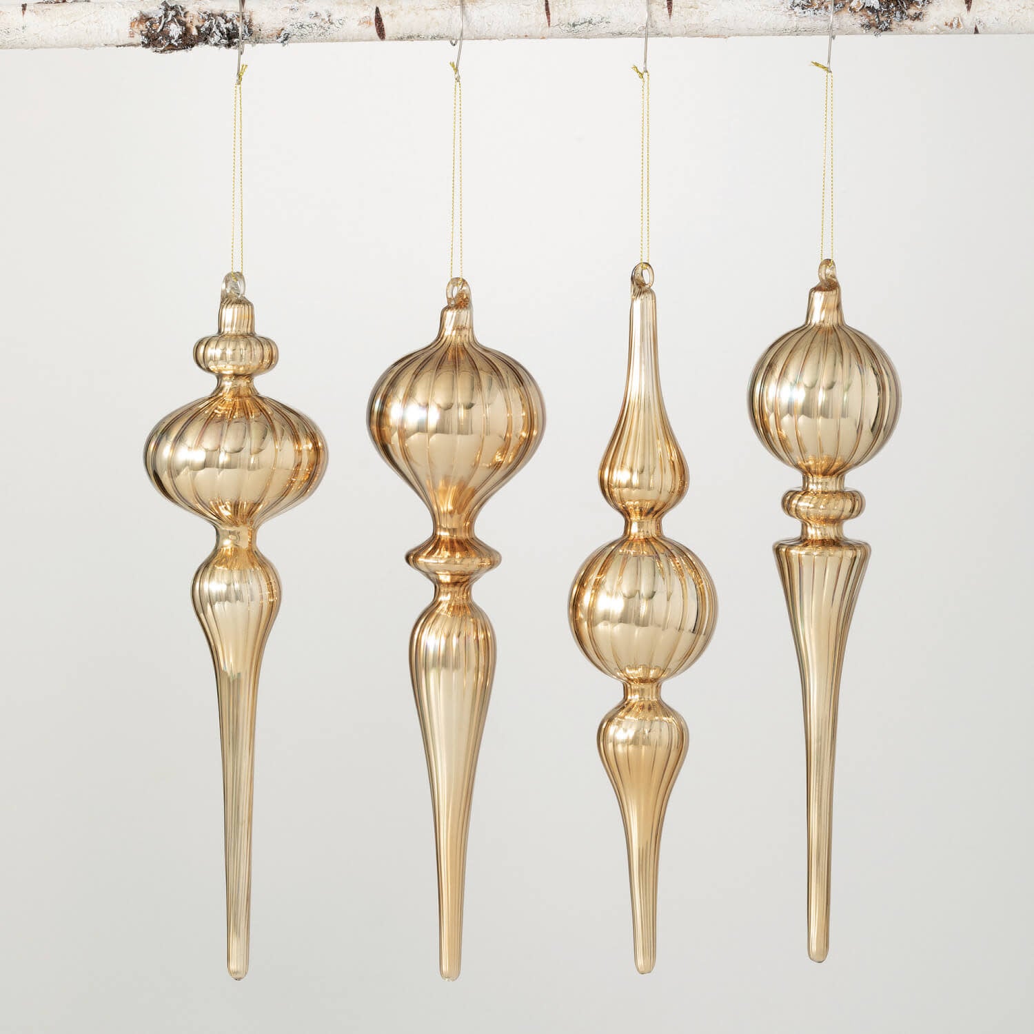 This exquisite golden-tinted glass finial ornament will make a grand addition to your next holiday tree.
