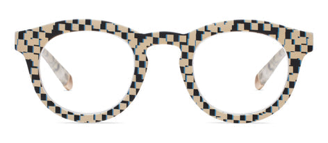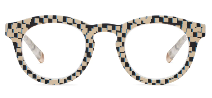 Curiously Chic. Shake things up with Frame of Mind, a style that checks all the beauty boxes. The stylish and iconic round frame and eye-catching, pixel checks take your look to the next level. Pop on a pair and elevate your frame of mind with this statement style.