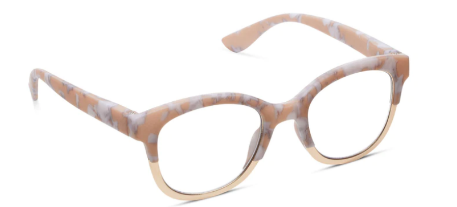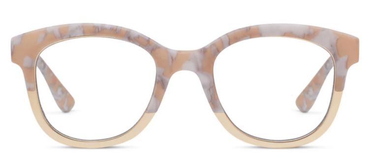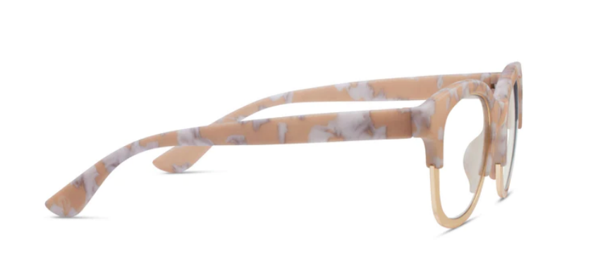 Experience understated elegance with these soft square frames. Georgia combines luxe metallic detailing with a palette inspired by nature's earthy tones, such as marble, horn, and tortoise shell.