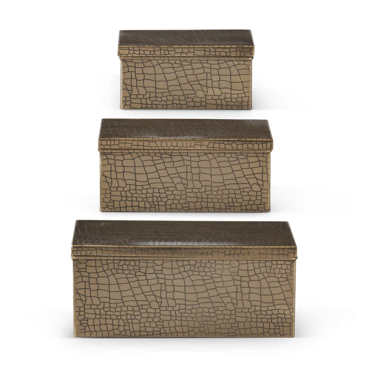 Gold Metal Alligator Skin Embossed Lidded Box
