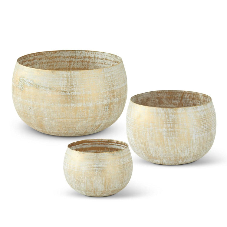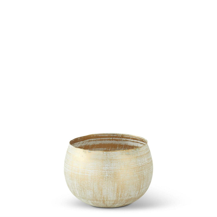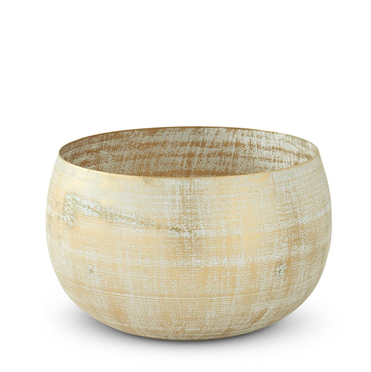 Elegant gold metal bowl with a whitewashed finish, perfect for adding a rustic touch to your décor. Ideal for centerpieces or decorative displays.