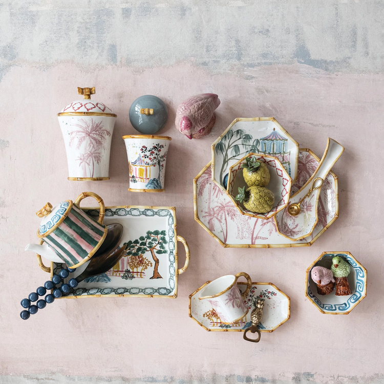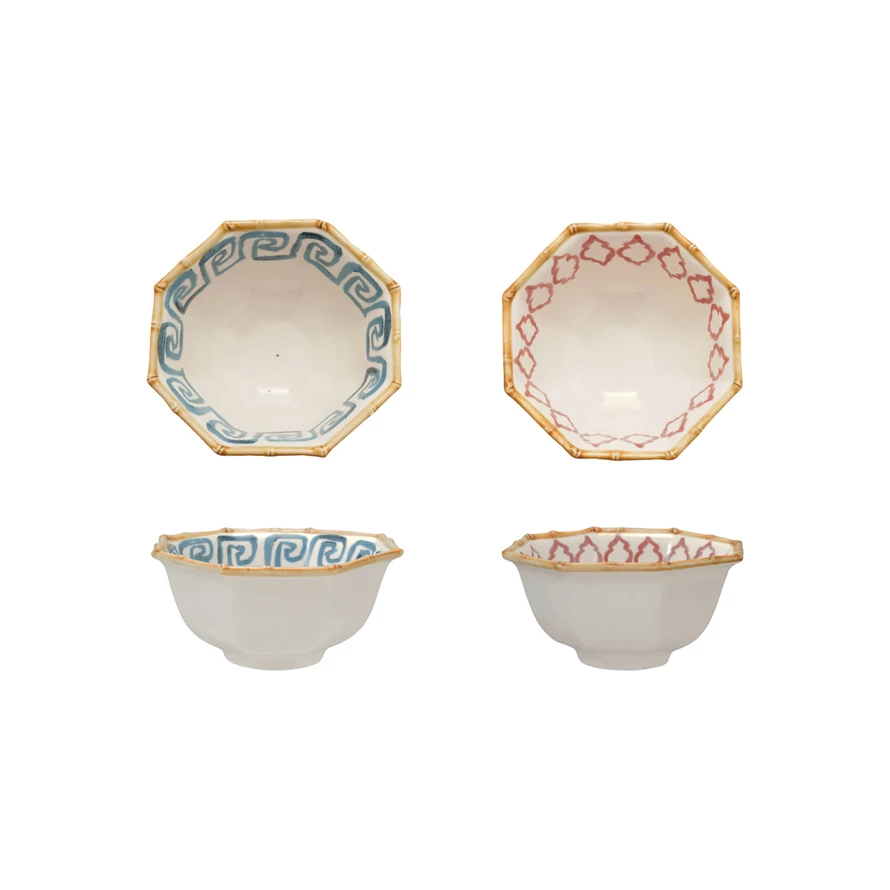 Hand-Painted Stoneware Octagon Shaped Bowl - Sold Individually
