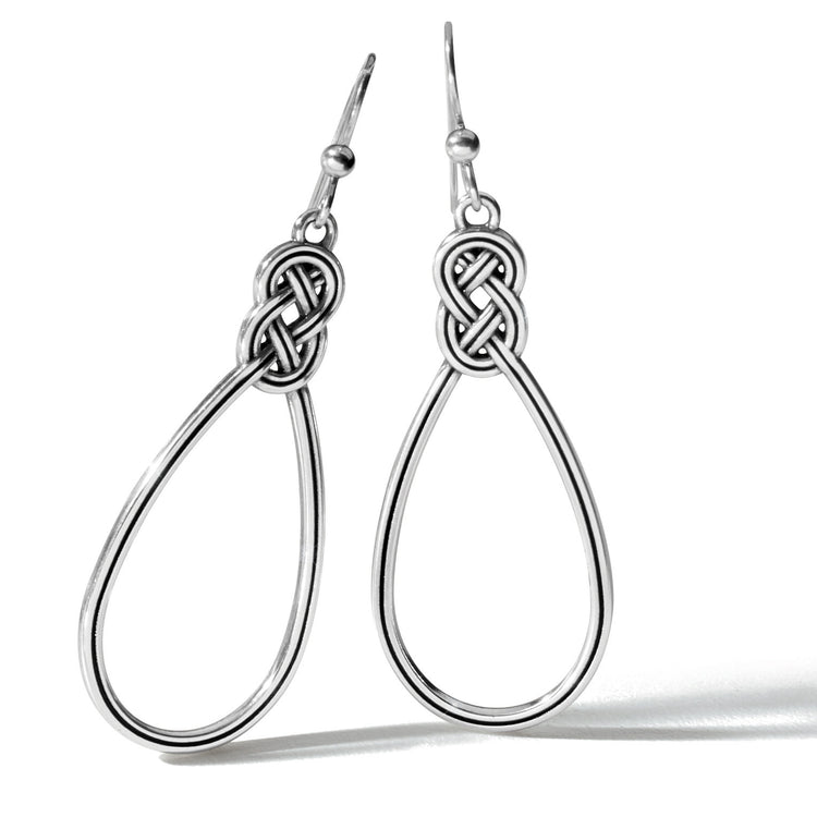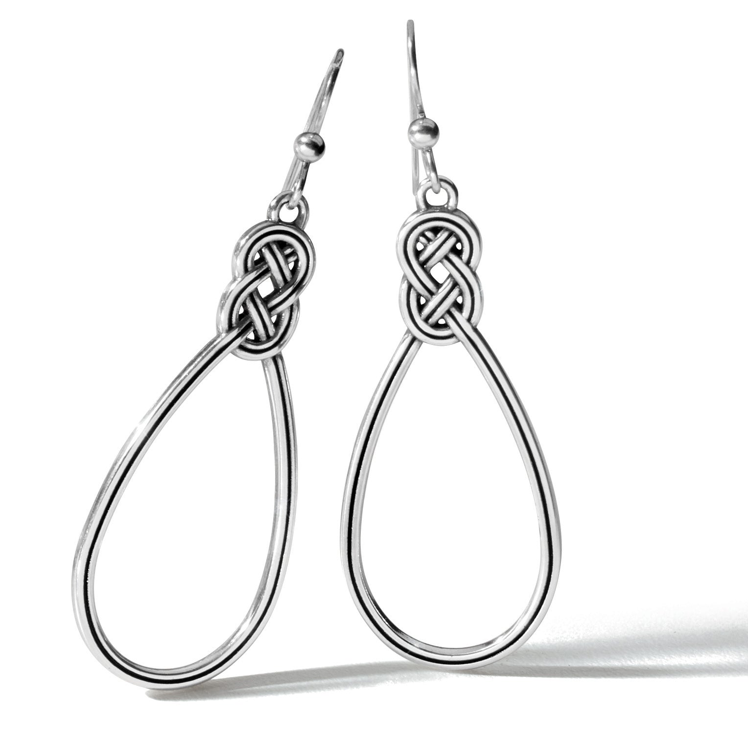 Recalling Celtic motifs, the interlocking knot in this collection historically signifies love and life. A classic teardrop hoop dangles in neverending style.