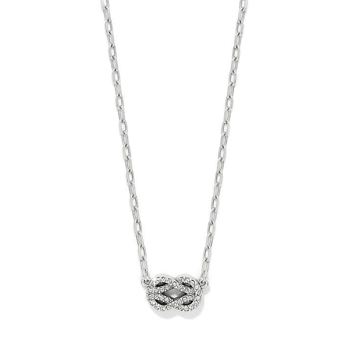 Elevate your style with this elegant petite necklace. Its intricate interlocked design is embellished with crystals, symbolizing harmony and refined beauty.