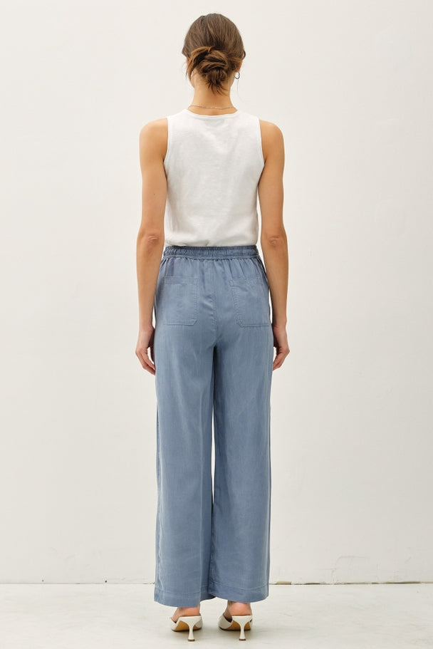 Tencel wide leg pant with pockets & elastic waist.