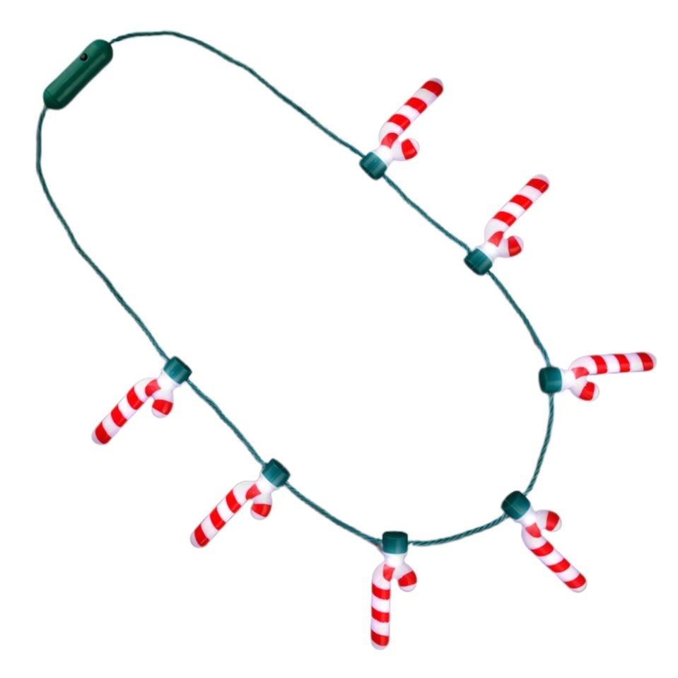 Sweet Holiday Radiance, dive into festive cheer with Jolly, the Light Up Christmas Candy Cane Party Necklace, ensuring you’re the shimmering star at every holiday gathering.