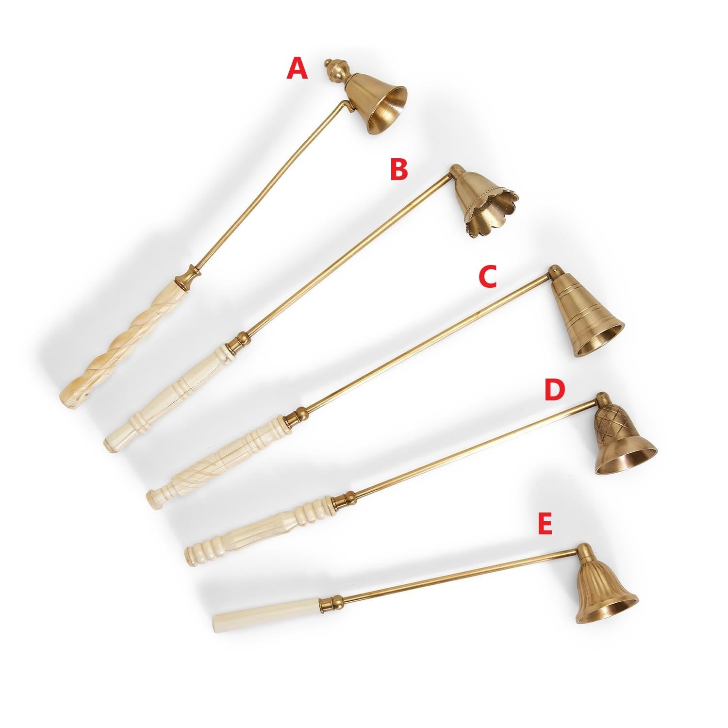 End your evening ritual on the right note with the brass bell-shaped candle snuffer. This elemental tool is a unique piece of home decor designed to extinguish a flame without the risk of spattered wax. 5 styles, each sold separately.