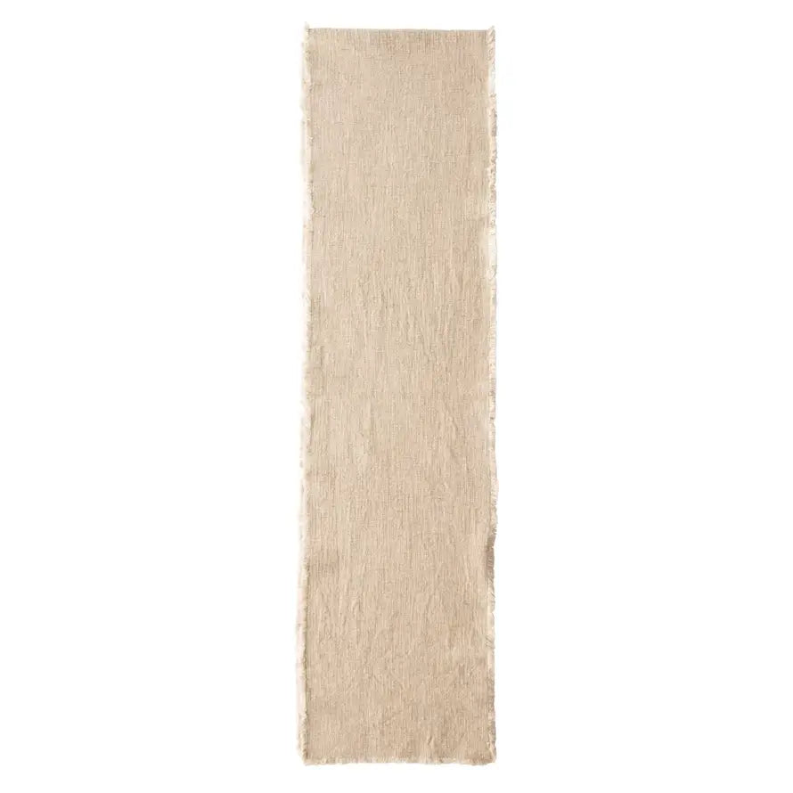 This table runner is perfect for any dining or kitchen table. With a linen blend and a beautiful natural color with frayed edges, this runner is perfect for any neutral home.
