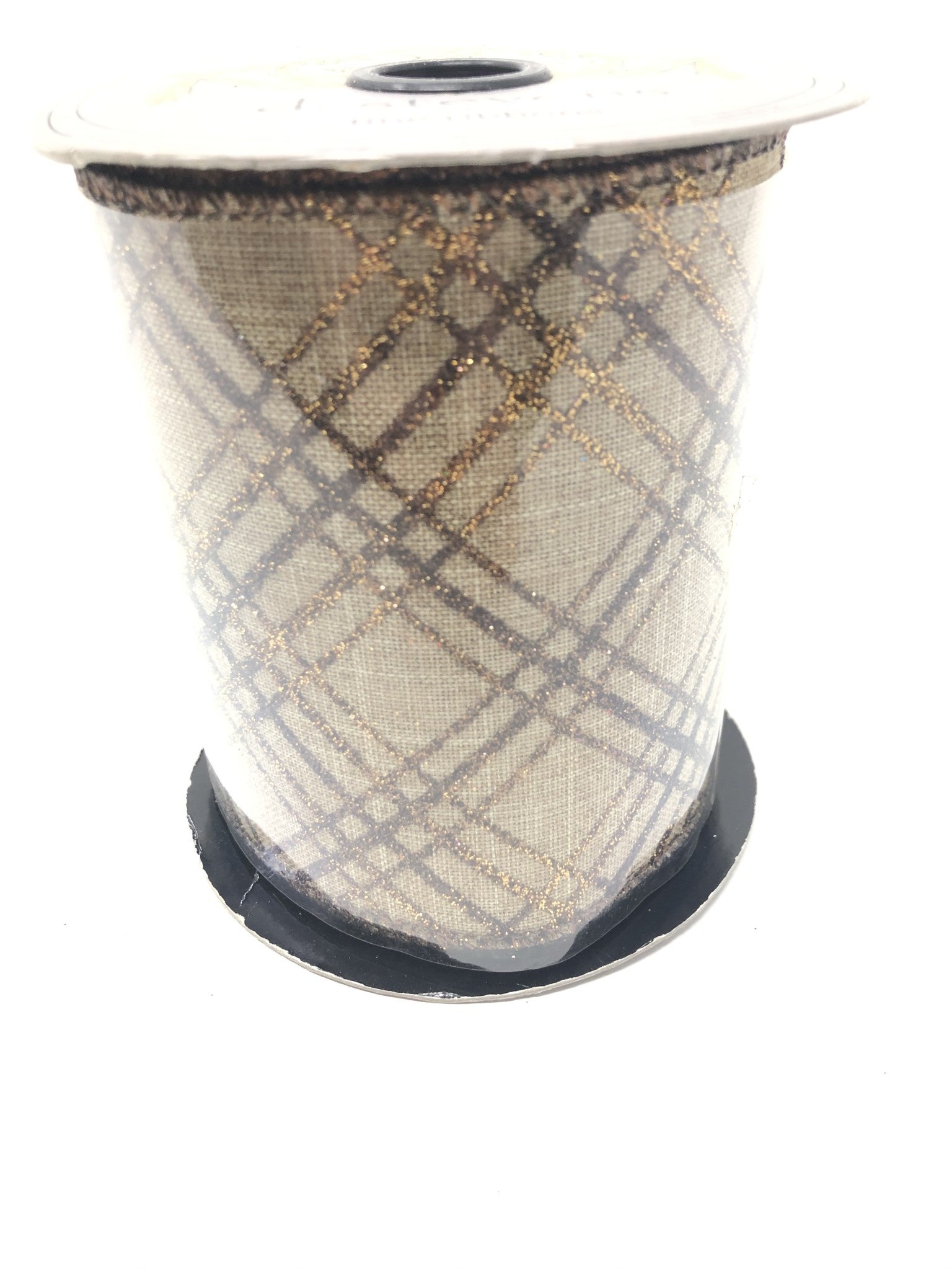 LINEN BROWN RIBBON WITH GLITTER PLAID CRISS CROSS