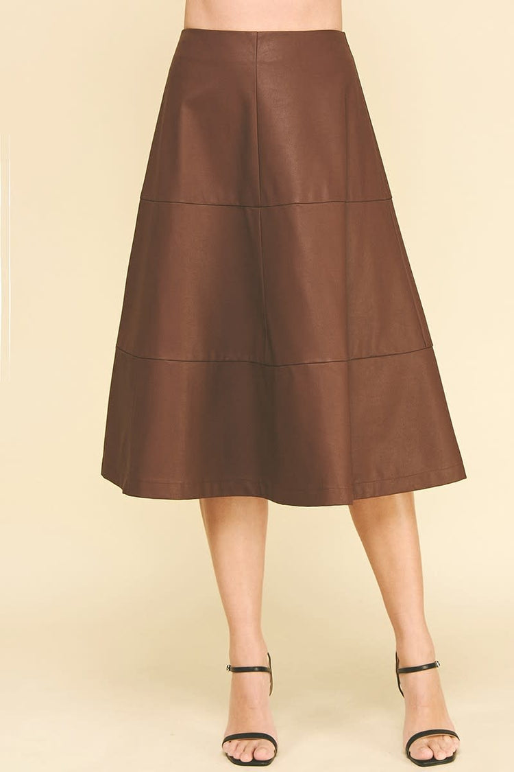 Lyka Pu Leather Tiered A-line Skirt