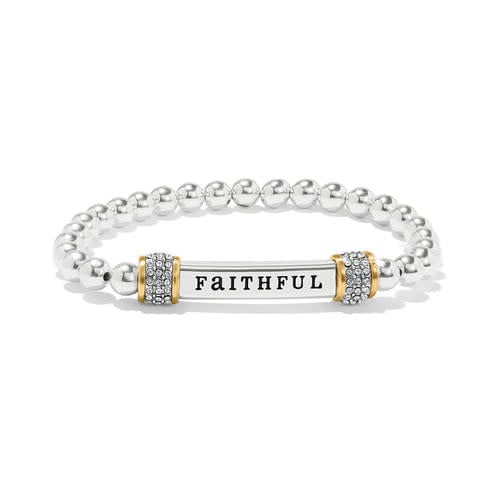 This delicately styled, comfortable, and versatile two-tone stretch bracelet sends an inspiring message of faithfulness to the world every day.