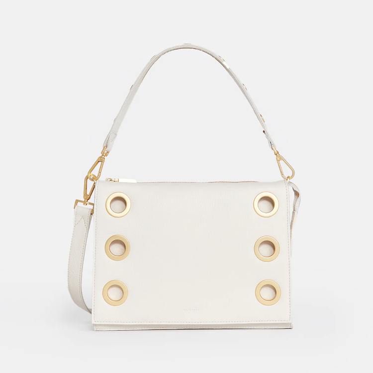 This clutch includes a vintage-style Hammitt strap, complete with a bonus riveted short strap, grommets, and a special hang tag to celebrate the Montana Revival Collection.