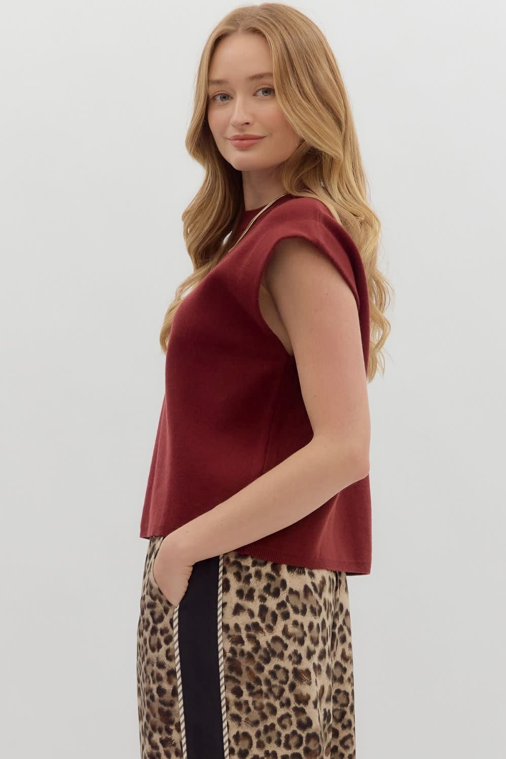 Chic and versatile, this solid crewneck sweater knit muscle tee top is perfect for effortless layering or standout style.