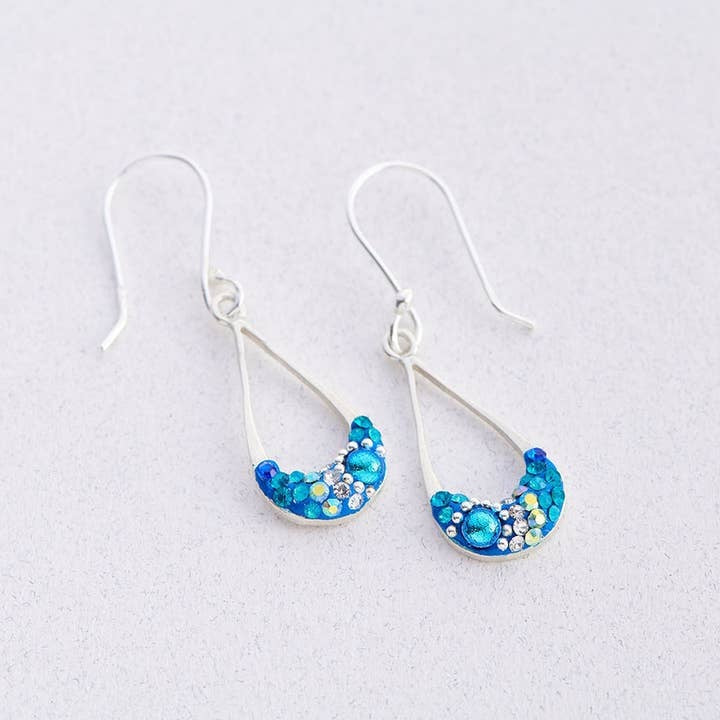 All of Mosaico's pieces start by hand making the silver bessel in any of the different shapes, then filling them with crystals, glass, and stones one by one, creating beautiful patterns never seen before. Some pieces have up to 600 components in them. Each piece will sparkle and twinkle in any light.