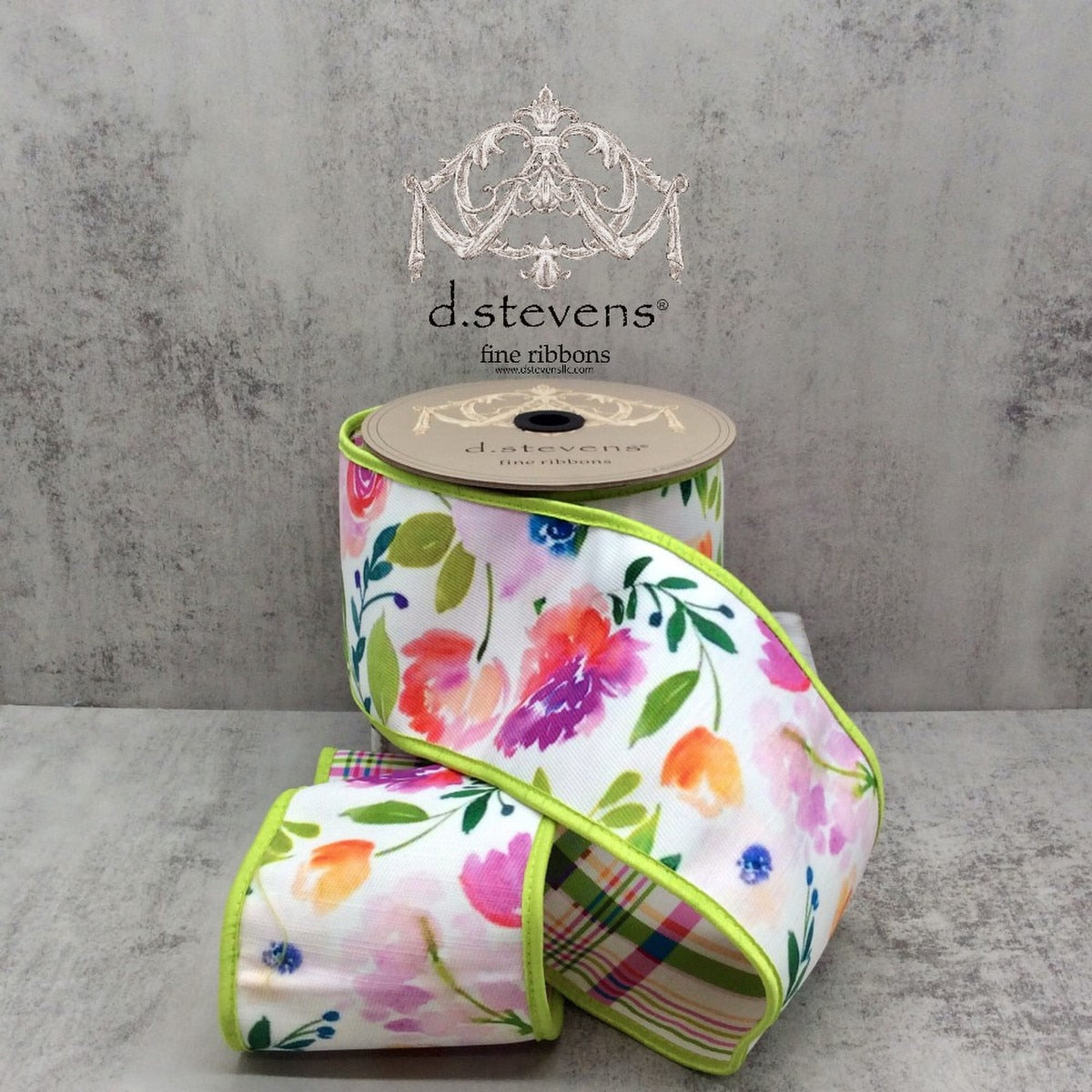 Poplin Floral Print, Colorful Plaid Back, Pink Green