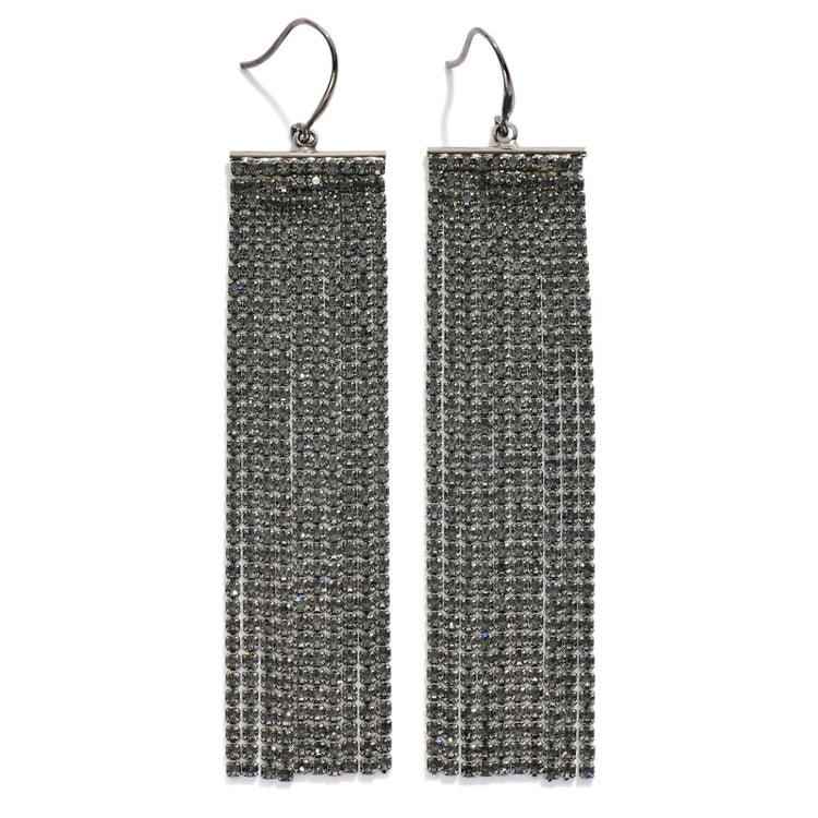 Elevate your style with these Rhinestone Fringe Drop Earrings. Featuring cascading rhinestones that shimmer with every movement, these earrings add a touch of glamour to any outfit. Perfect for special occasions!