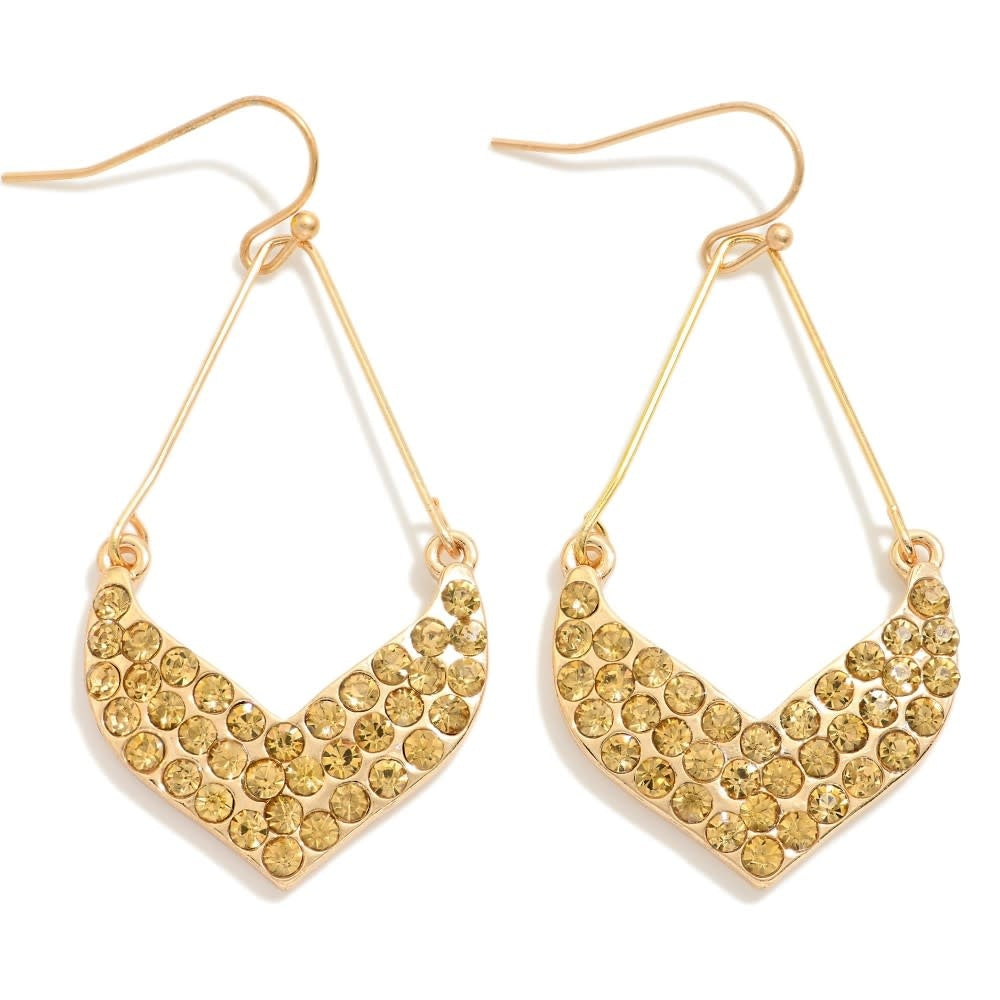 Rhinestone Studded Chevron Teardrop Earrings