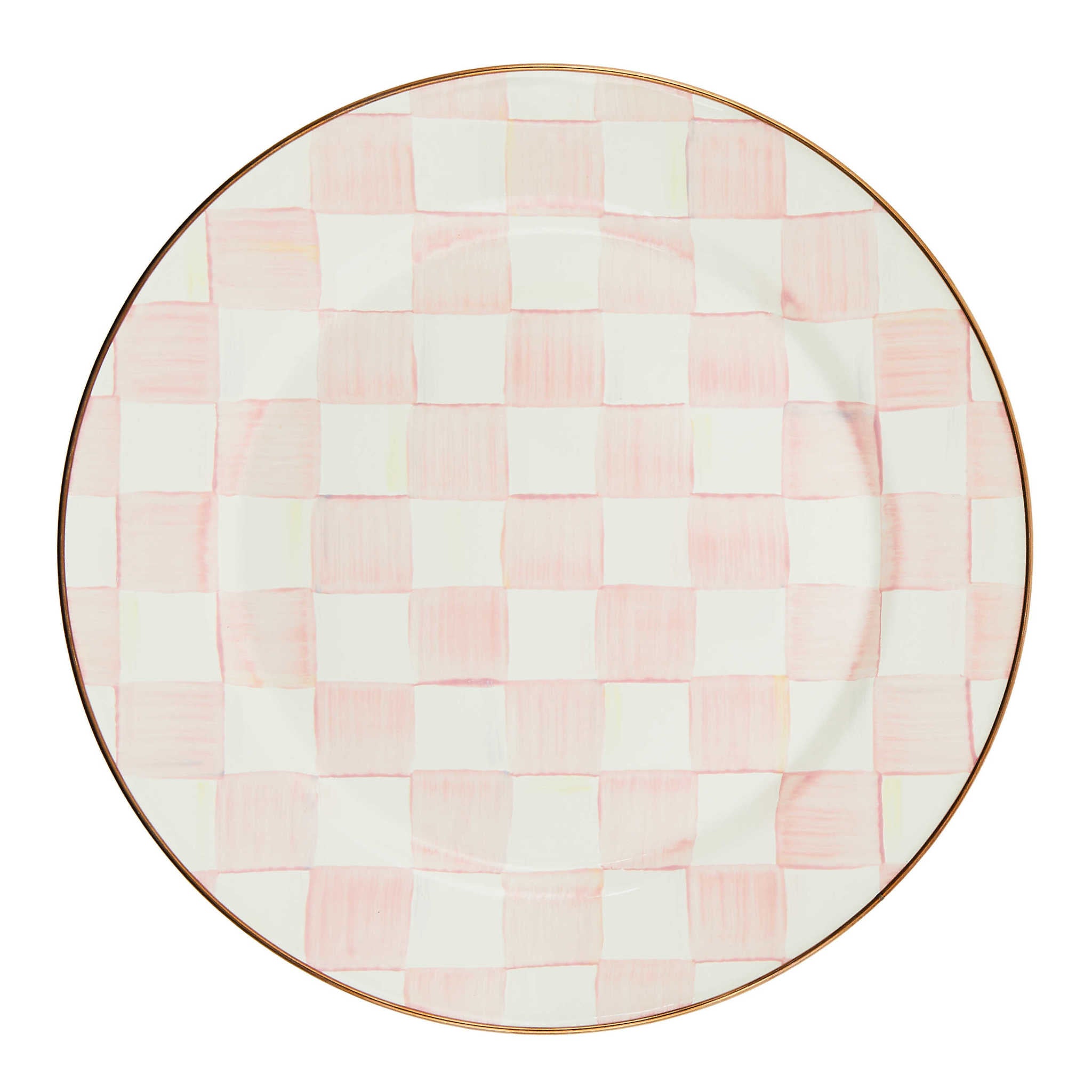 - Materials: Heavy-gauge, hand-glazed steel underbody with hand-painted Rosy Checks, rimmed in bronzed stainless steel. Pieces may vary due to the handmade nature of each product. Imported.