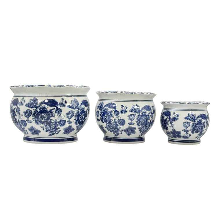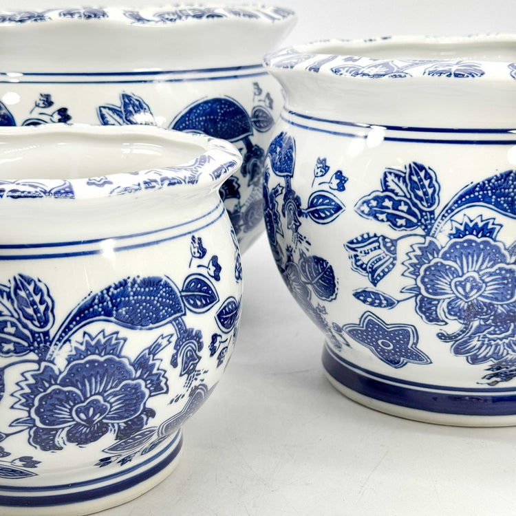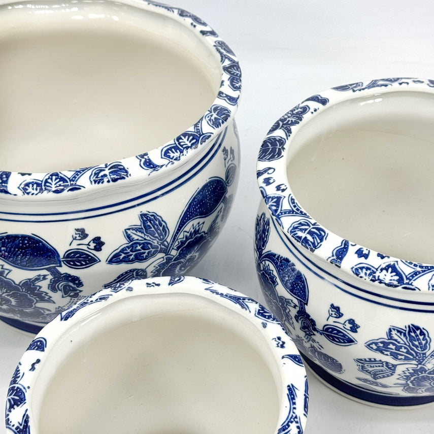 Round Blue & White Ceramic Chinoiserie Planter - Sold Individually
