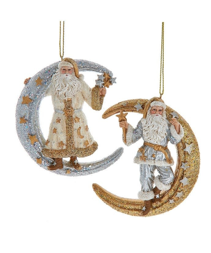 Add a celestial touch to your holiday decor with Santa on Metallic Moon Ornament!