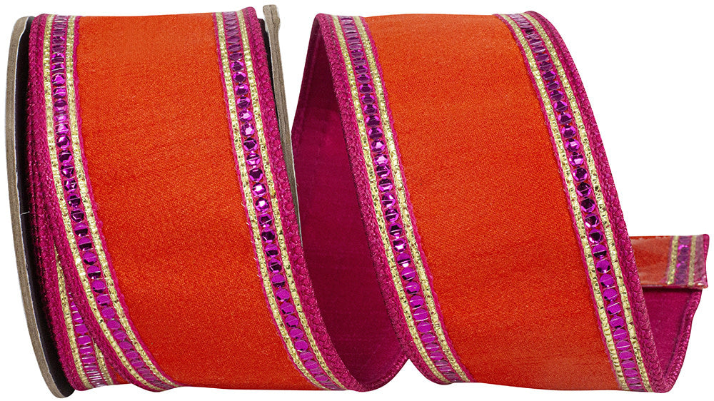 Sequin Trimming Striped Edge Dupioni Deluxe Wired Edge Ribbon