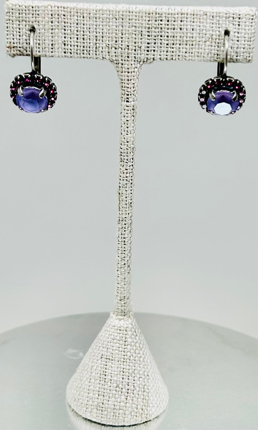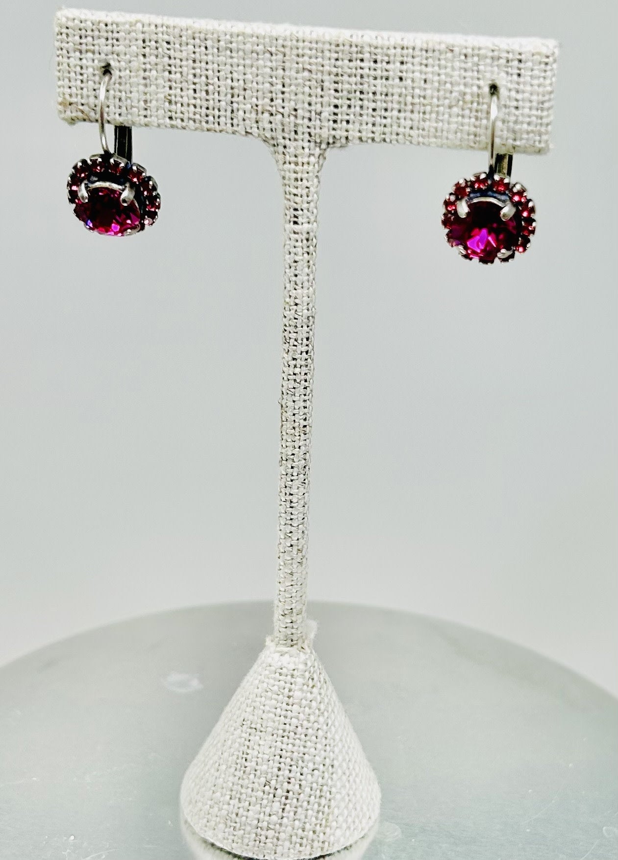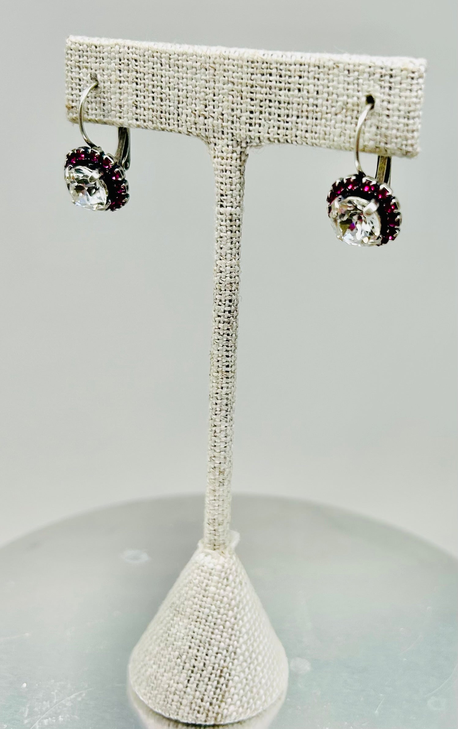 Silver Earrings Fuchsia  Stone Pave