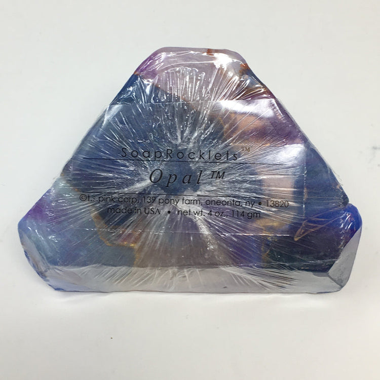 They look like crystals, especially when wet, as the water lights up their brilliant colors. As you use them, each soap slowly weathers away like a stream stone in geologic time, exposing even more beauty within.