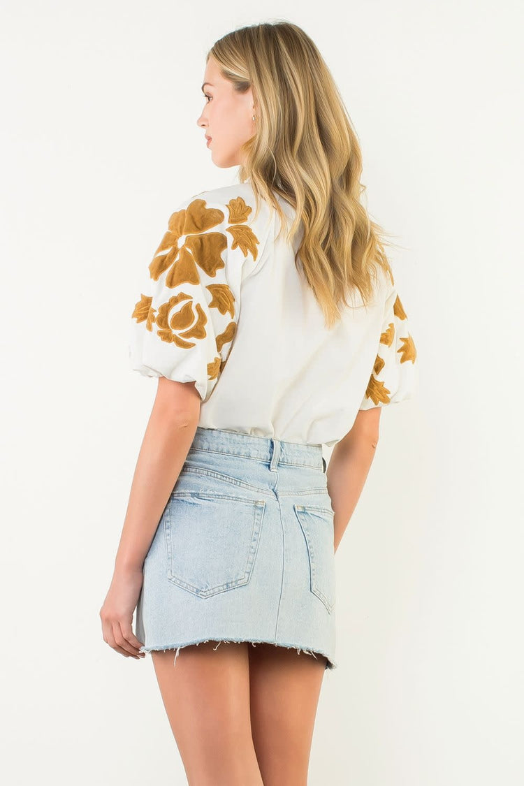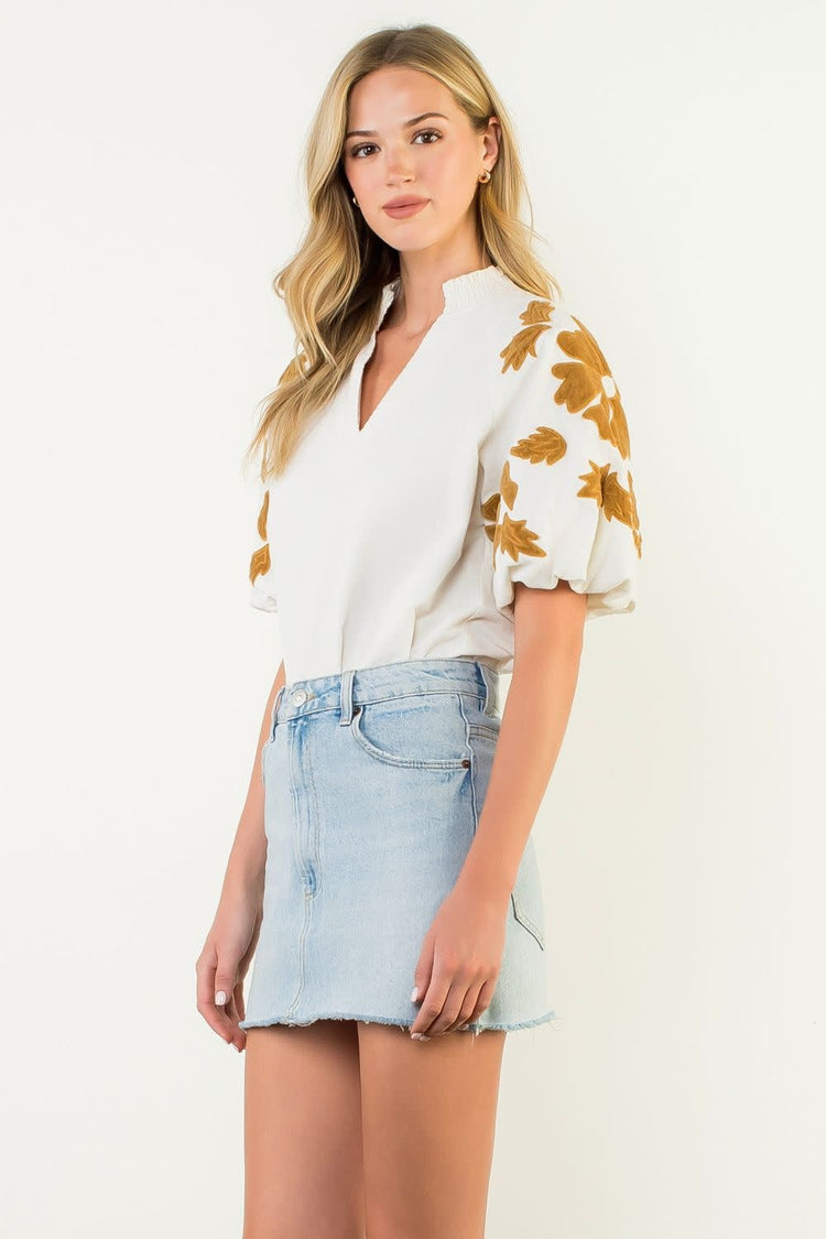 Sophia Embroidered Chenille Floral Puff Sleeve Top