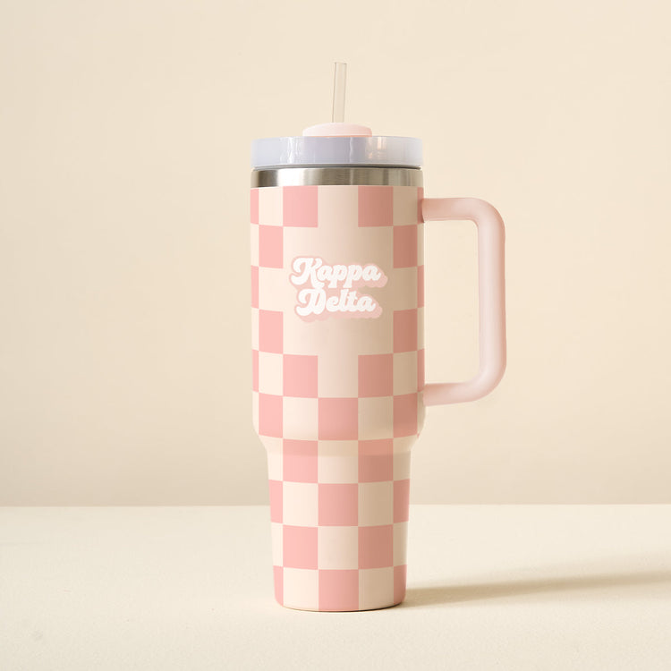 Introducing our Sorority Check Tumbler, the ultimate drinkware for stylish sisters! This trendy tumbler holds up to 40 oz. of your favorite beverage and features a darling check pattern.