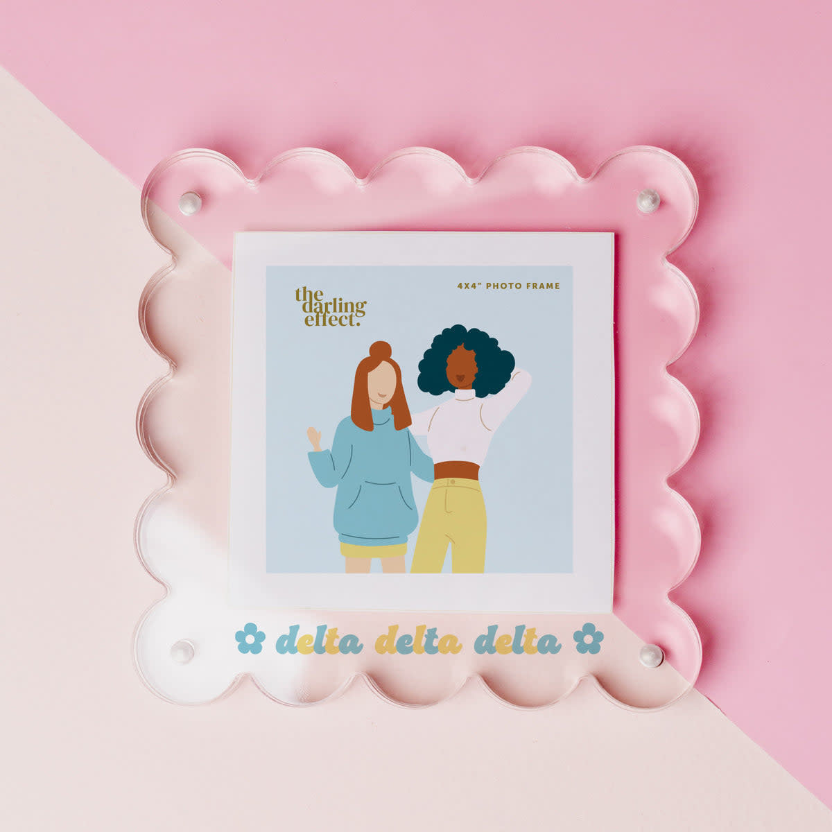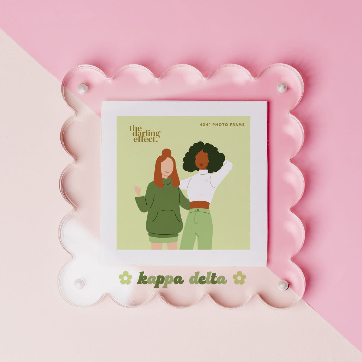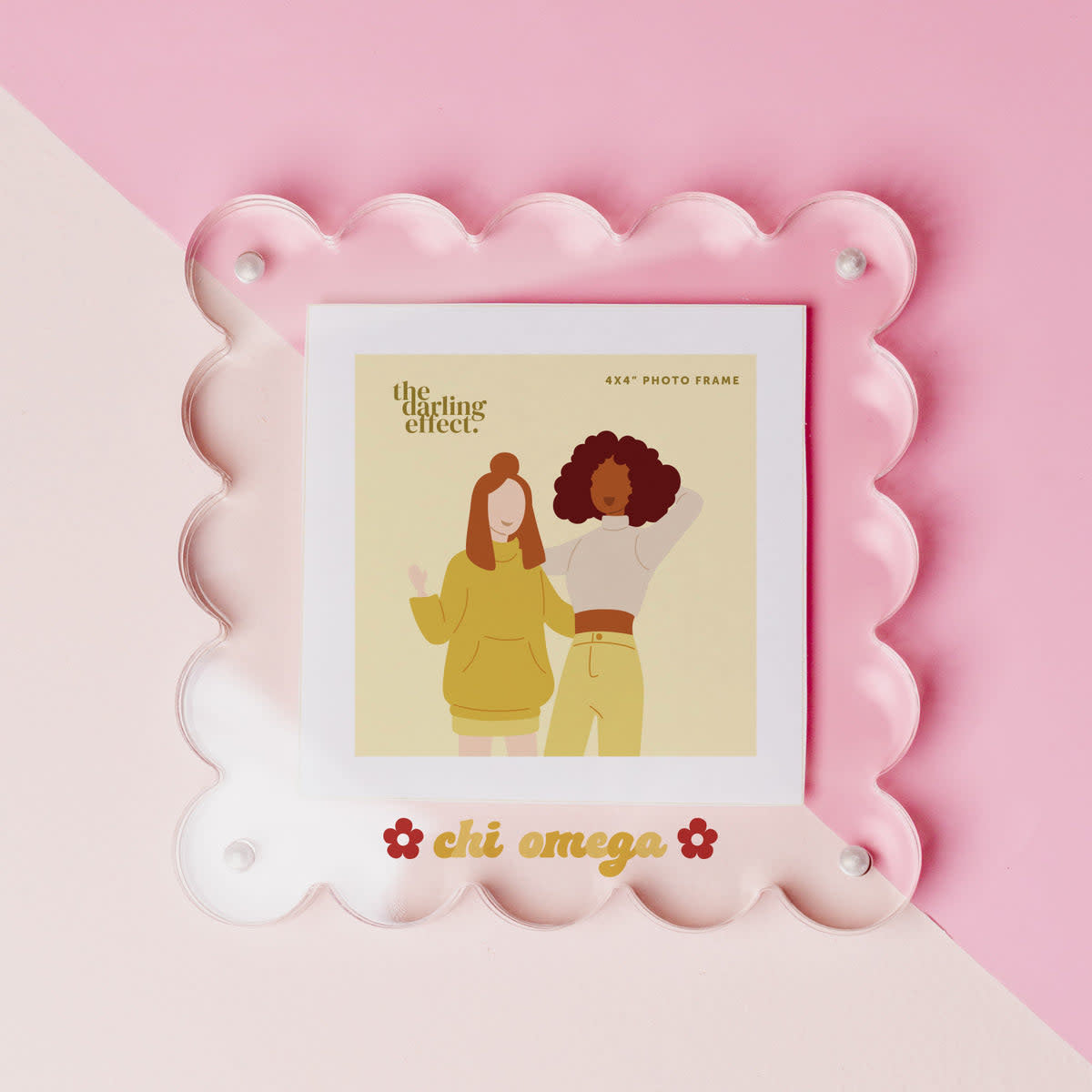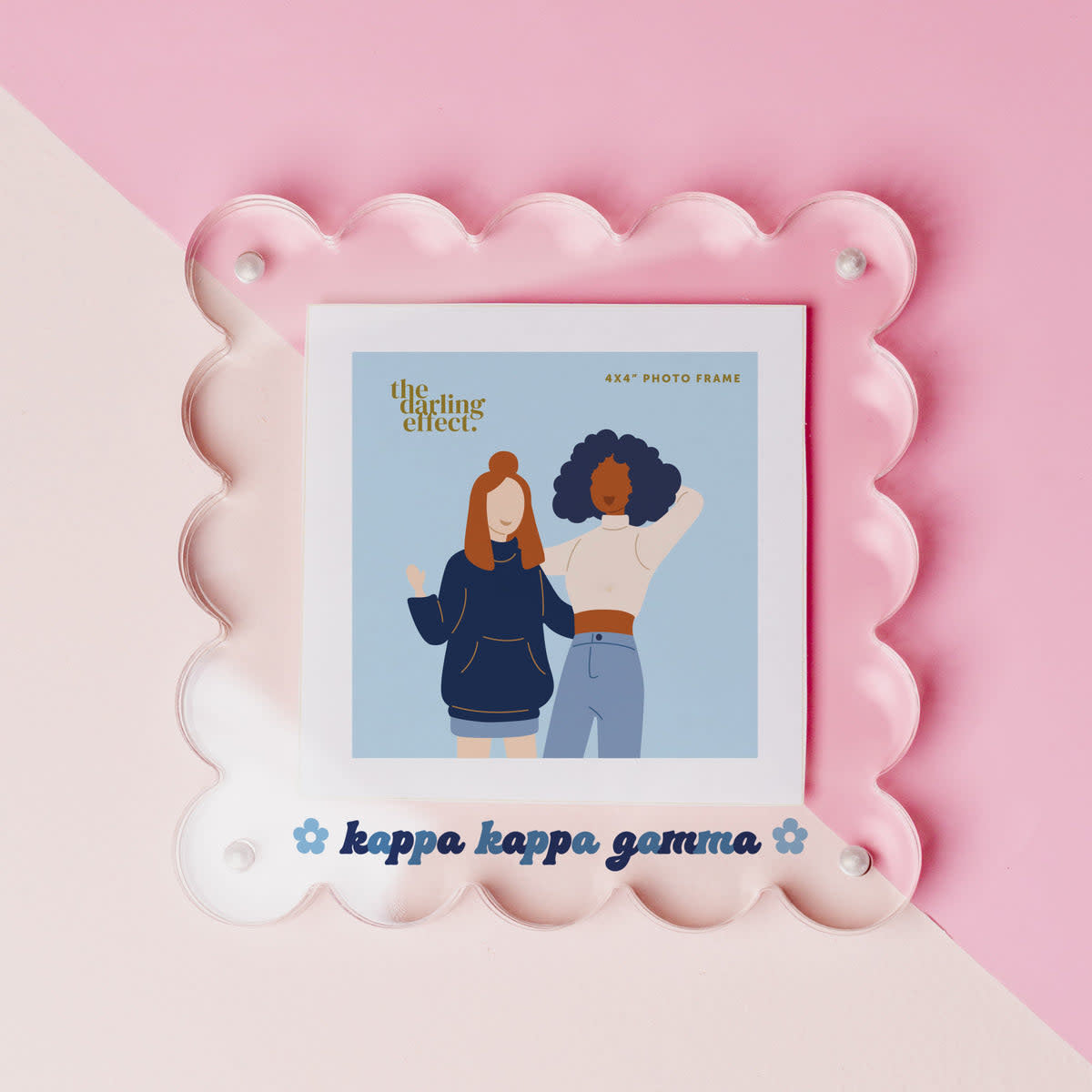 Display your cherished sorority memories with this adorable clear acrylic frame! Makes a perfect gift for Big/Little to accessorize and style your space.