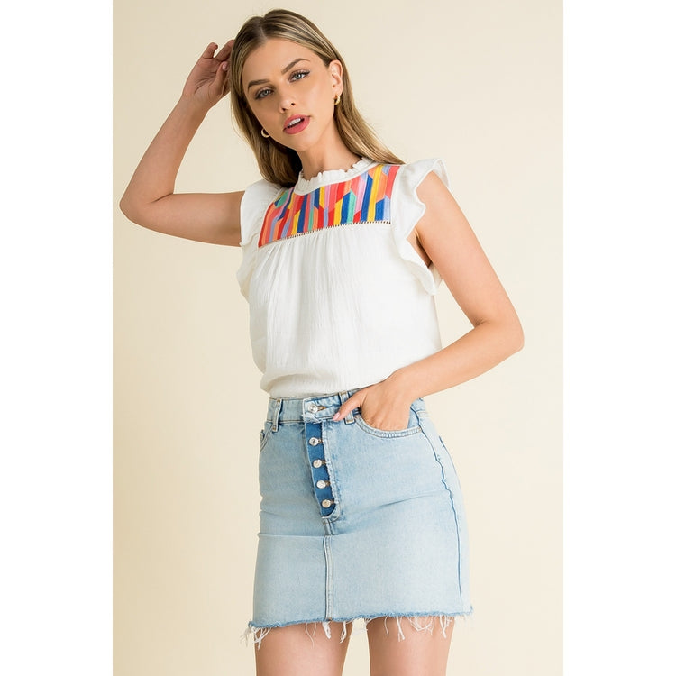 Stella Embroidered Ruffle Sleeve Knit Top