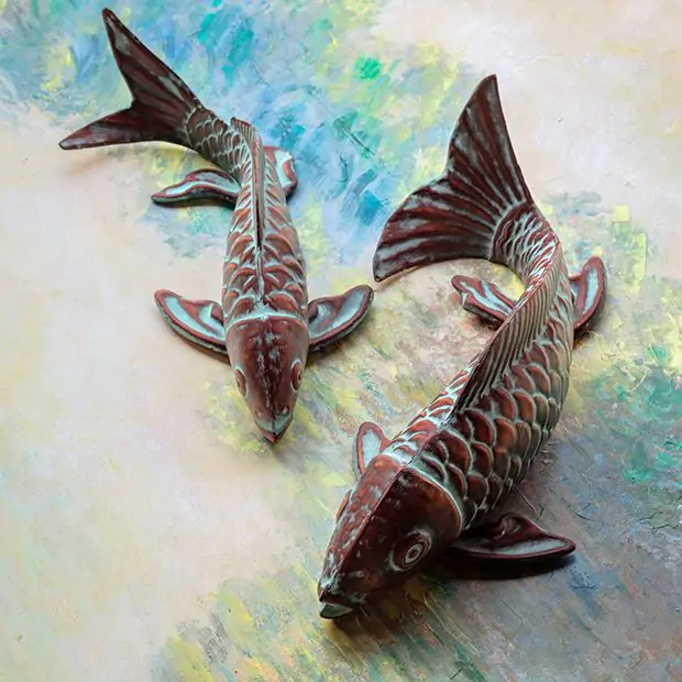 Swimming Koi Fish With Verdigris Finish - Sold as Set