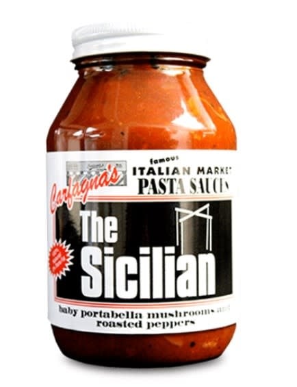 Baby portabella mushrooms and roasted peppers. Excellent served over cut pastas, such as Penne or Rigatoni.
