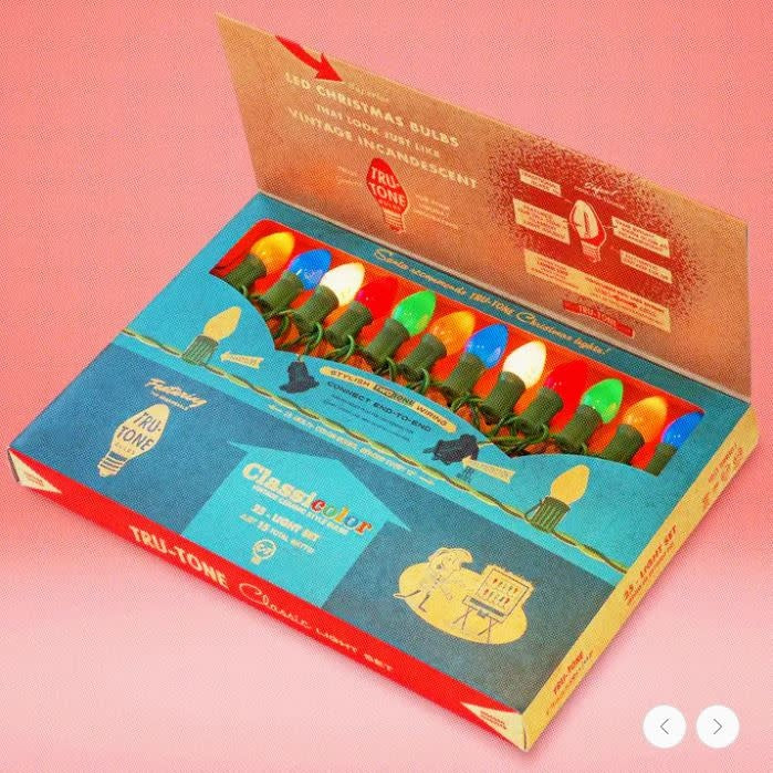 Vintage style complete Christmas light set in classic display gift box featuring Tru-Tone‚Ñ¢ bulbs. The unique ultra-warm LED filament perfectly replicates the warm glow of incandescent. Capture the nostalgia of Christmas and every holiday with authentically retro decorative bulbs and accessories from Tru-Tone‚Ñ¢. Includes ultra soft and flexible Classic Light String with twisted pair vinyl wire in Two-Tone Green.