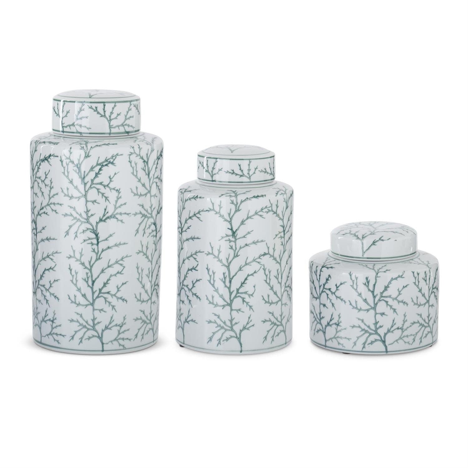 White & Green Coral Ceramic Ginger Jar