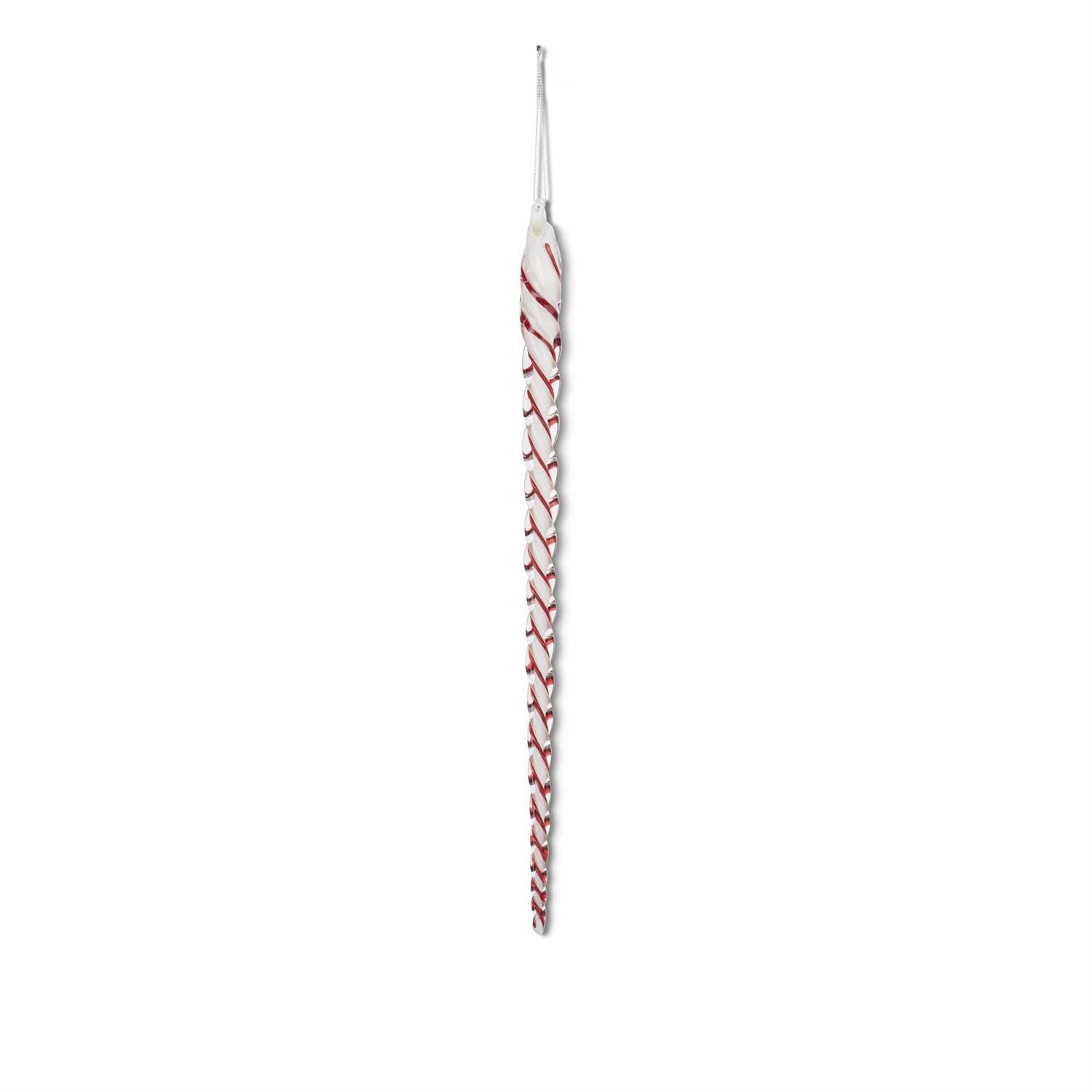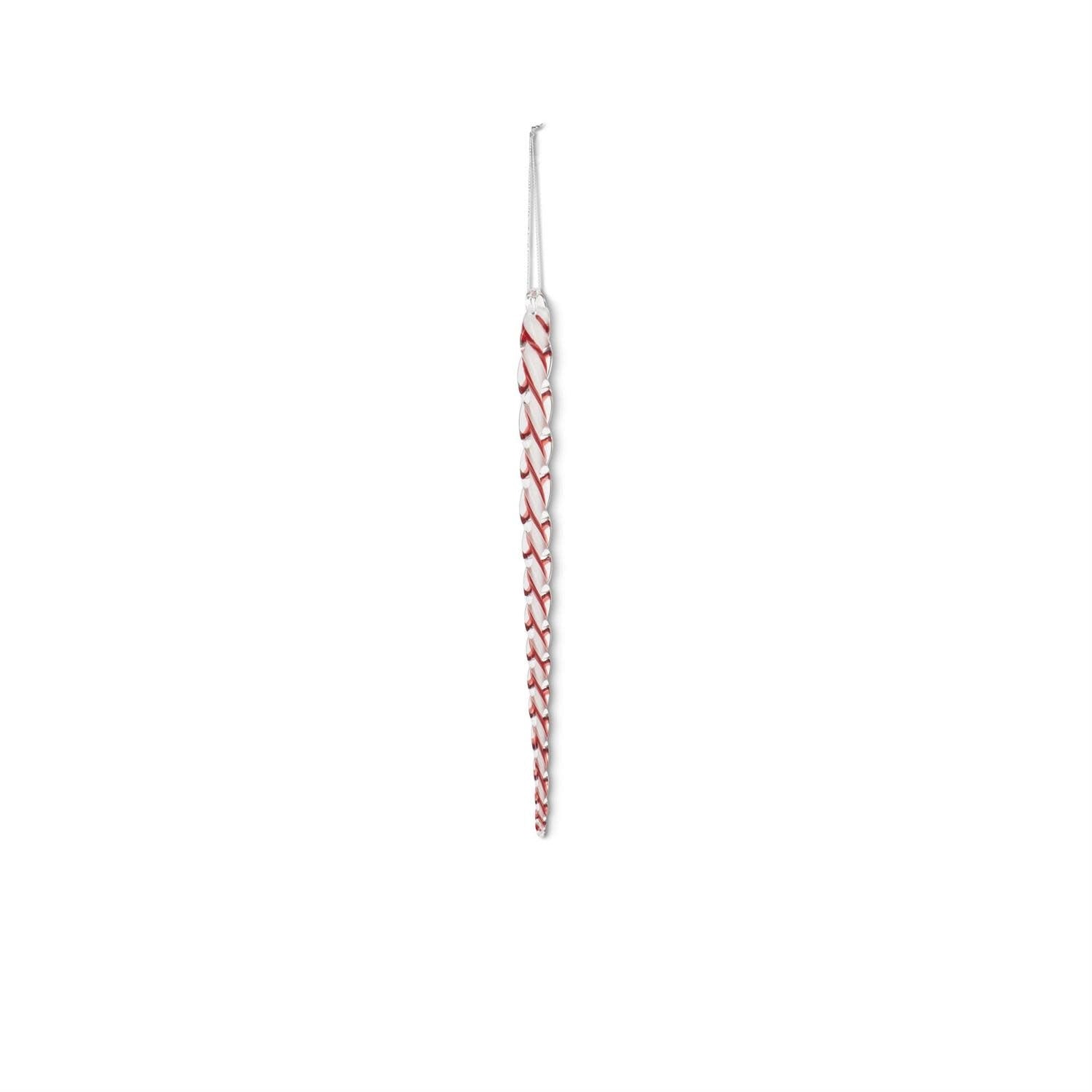 White & Red Spiral Glass Icicle Ornament