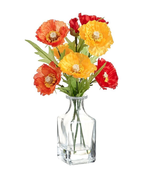 Stunningly beautiful, this 10" Poppy Silk Flower Arrangement with Glass Bottle is perfect for both home and office, and makes a thoughtful gift too.