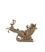 Resin Santa in sleigh with prancing deer, crafted with antique gold finish and fine details. A timeless holiday display piece that adds elegance and festive charm to any mantel or tabletop setting.