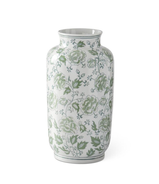 15 Inch Green & White Floral Ceramic Vase