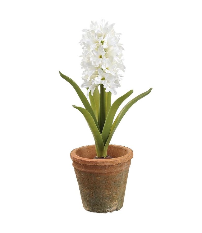 Lifelike hyacinth set in an aged clay pot, adding natural charm and texture to any space. Its realistic blooms and rustic pot make it a simple, timeless accent for tables, shelves, or entryways.