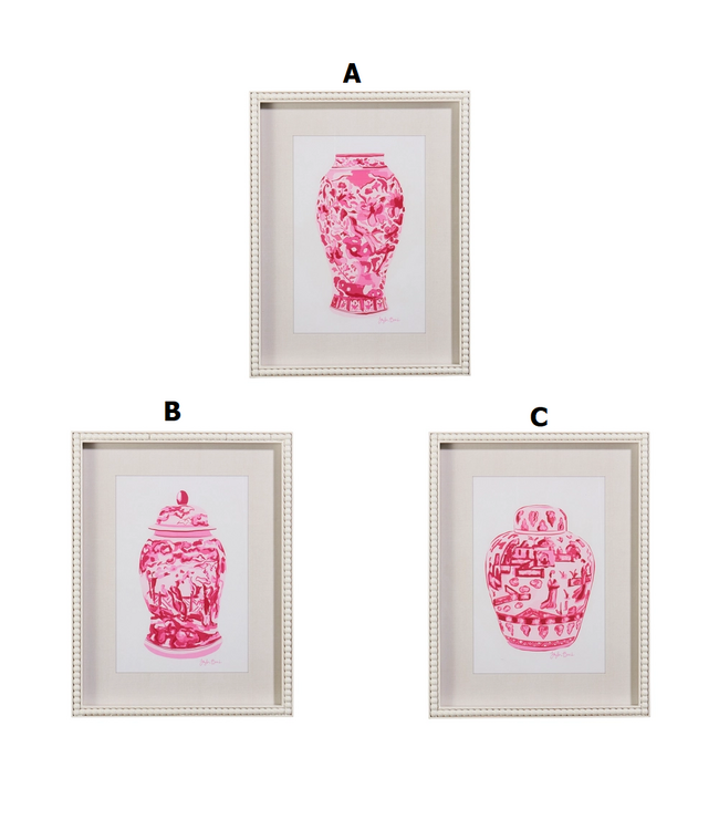 18" Pink Chinoiserie Container Framed Wall Art - Sold Individually