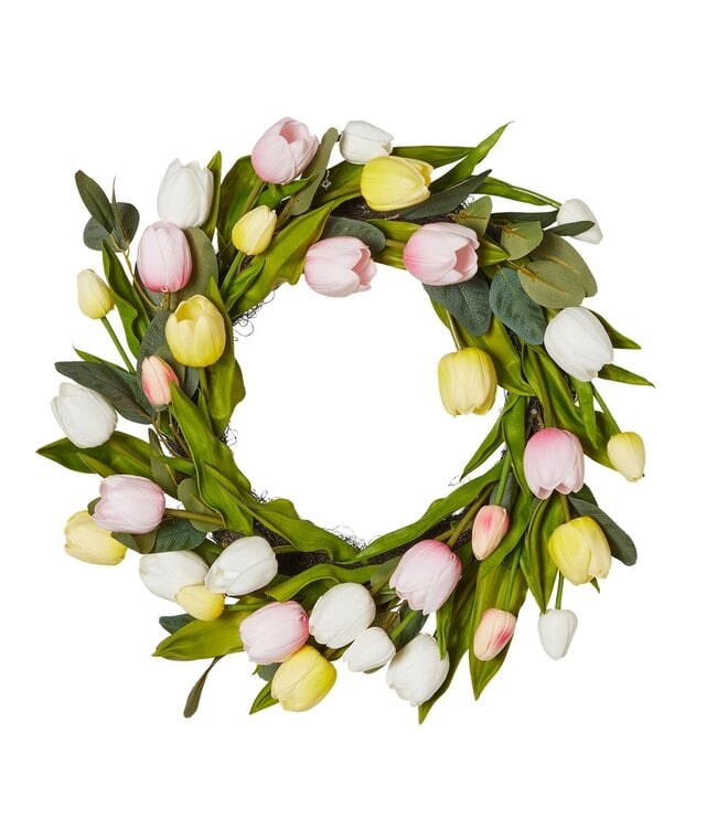 Elevate your springtime decor with the artificial white and pink tulip wreath. This enchanting wreath is meticulously crafted to capture the essence of the season, bringing a burst of spring and charm to any space.