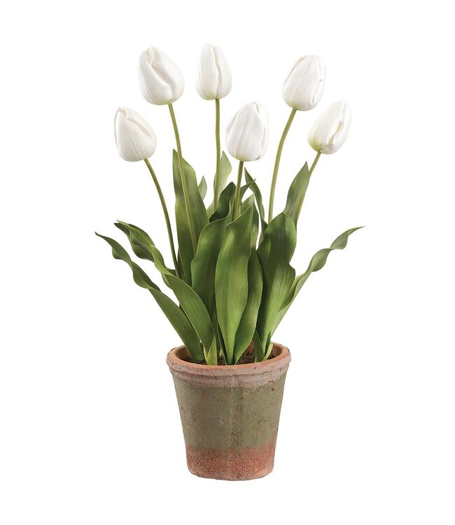 23 Inch Tulip in Aged Clay Pot - White