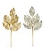 Each one features a branch with large, flat leaves covered in glitter and beads is approximately 24 inches, is made of plastic, and is coated with sparkly silver color.