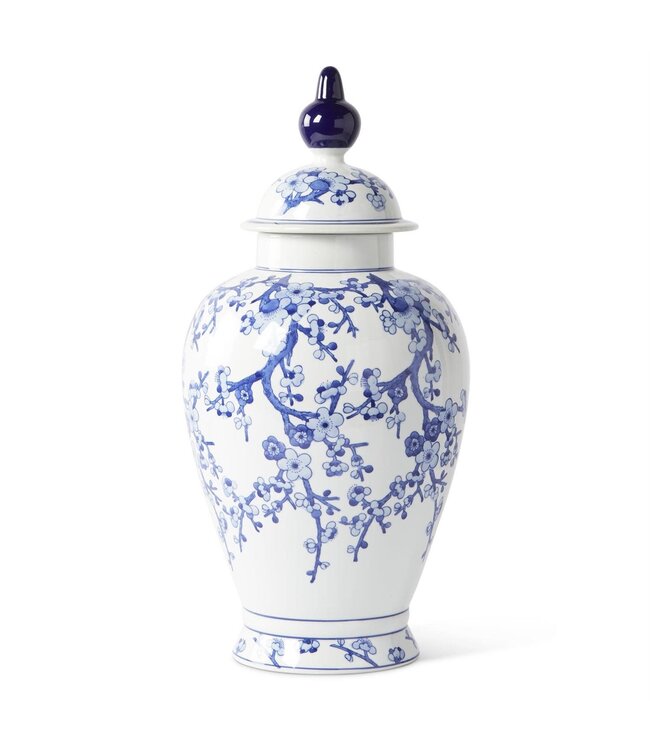 24 Inch Ceramic Blue & White Chinoiserie Lidded Ginger Jar