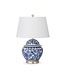 26 Inch Ceramic Blue & White Ginger Jar Lamp with White Shade