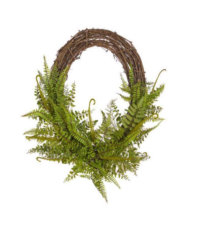 Hang the Oval Mixed Fern Wreath anywhere for a pop of natural color and dimension. Bring a verdant touch to the entryway with this lovely oval wreath, or use it to spruce up a wall gallery display.Â