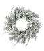 This wreath features thick and luscious branches covered in snow! It is approximately 30 inches round and is made of plastic and twig