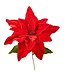 The RAZ Imports 32" Red Velvet Poinsettia Stem is an artificial holiday floral pick featuring a large, festive poinsettia bloom made from a high-quality red velvet material. The stem is a prominent, elegant decoration designed to add a touch of glamour an