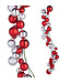 This red and silver ball garland is made up of plastic that measures approximately 4 feet long.